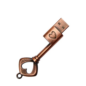 Metal Bronze Heart Key USB Flash Drive 2.0 Pendrive 64GB 32GB 16GB for Business Gift